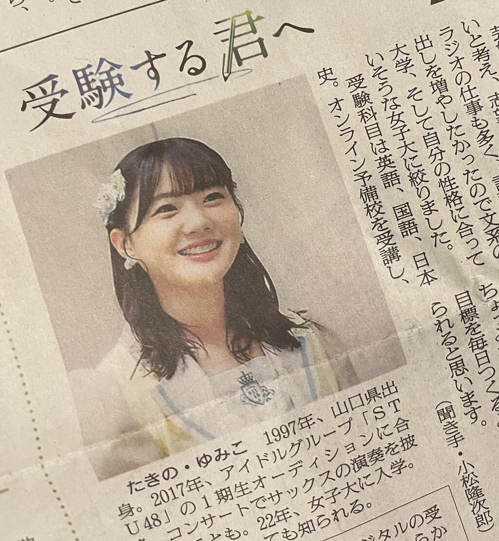 今日の朝日新聞朝刊に瀧野由美子さんの「受験する君へ」が掲載されました。2度の大学受験を経験した瀧野さんに、勉強法などを語っていただきました。インタビューしたのはエディオン紙屋町ホールで開かれたMiKER!公演の直前でした。