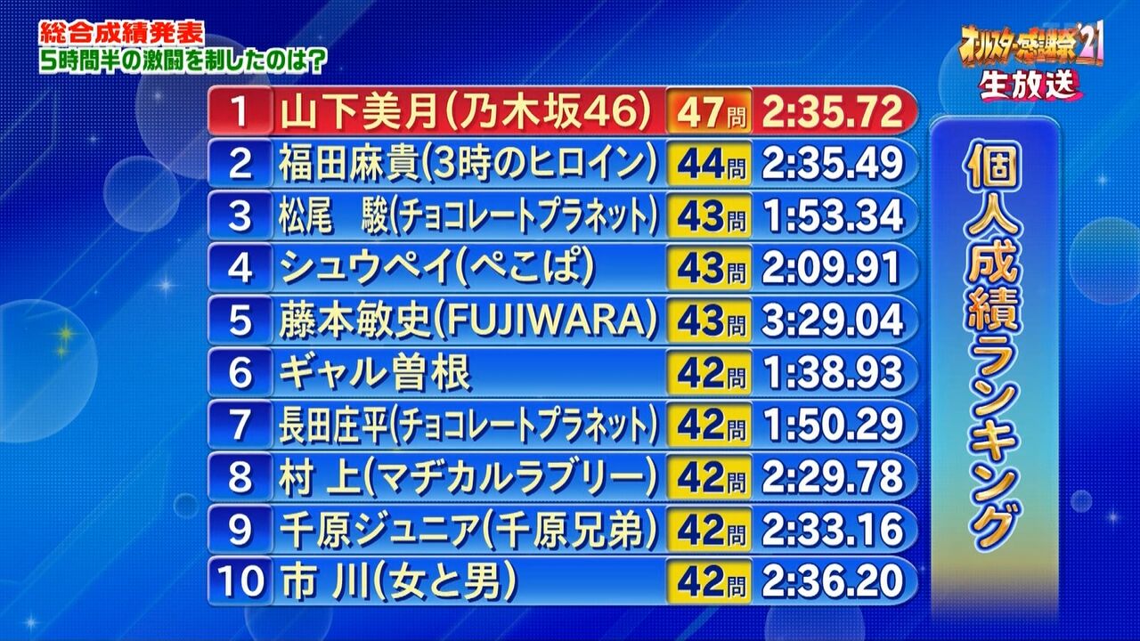 1位が美月が…。