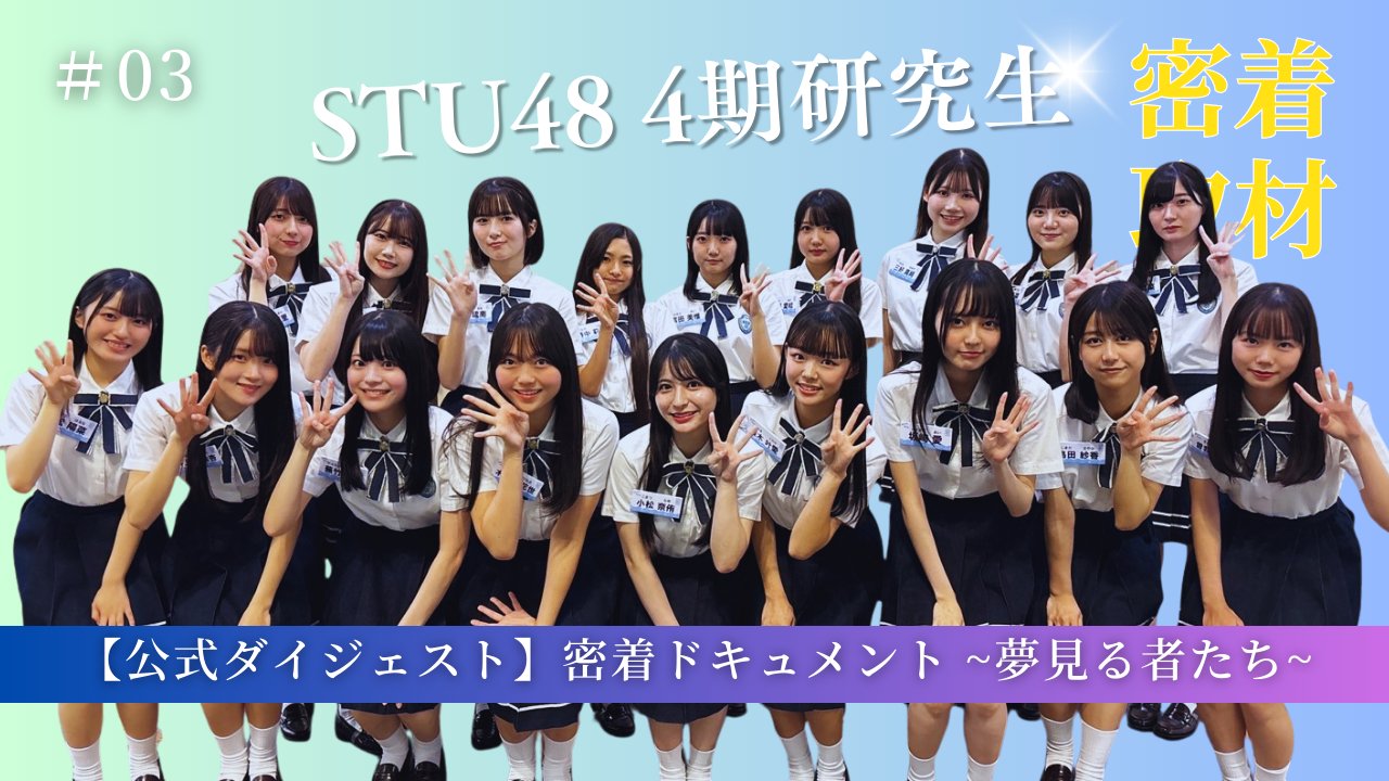 【STU48 4期研究生】密着ドキュメント 夢見る者たち「episode3 光」公開 2025年12月05日 カテゴリ:STU48YouTube 74: 名無し48さん 2025/12/05(金) 17:23:15.39 STU48 @STU48_official_ / STU48 4期研究生によるドキュメンタリー企画 密着ドキュメント 夢見る者たち「episode3 光」 が公開されました🎥 \ ▼短尺版 https://youtu.be/B1uhBgwEJM4 ▼完全版 https://youtu.be/vdh5fh39WpA ✅4期研究生について https://sp.stu48.com/feature/4kisei Sponsored by SHOWROOM #STU48_4期研究生 午後5:05 · 2025年12月5日 https://x.com/STU48_official_/status/1996853422503624972 【【STU48 4期研究生】密着ドキュメント 夢見る者たち「episode3 光」公開】の続きを読む