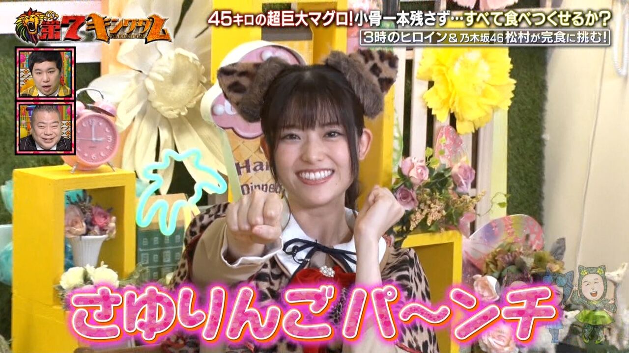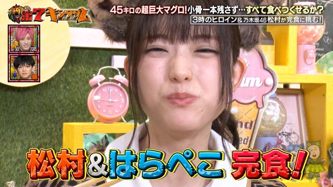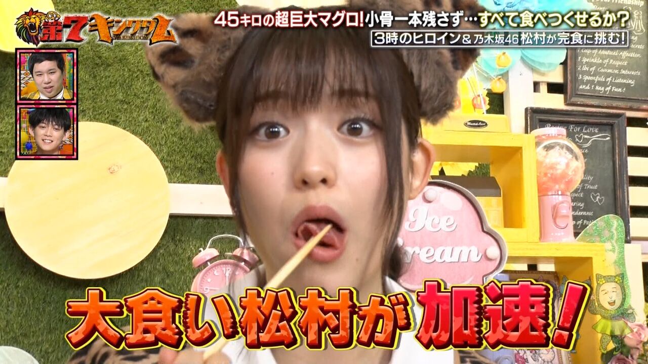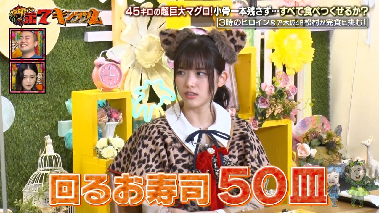 番組では、お笑いトリオ・3時のヒロインが45キロの本マグロ1匹を完食する企画に挑戦することになり、今回は、助っ人として乃木坂46の松村沙友理さんが登場。